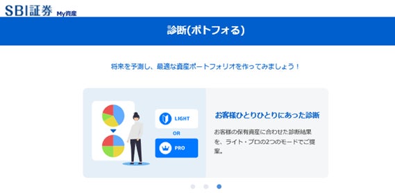 株式会社SBI証券(本社:東京都港区、代表取締役社長:髙村正人、以下「当社」)は、2022年9月4日(日)から、PCサイトおよびスマートフォンサイトにおいて、保有資産診断ツール「ポトフォる」の提供を開始しますので、お知らせします。