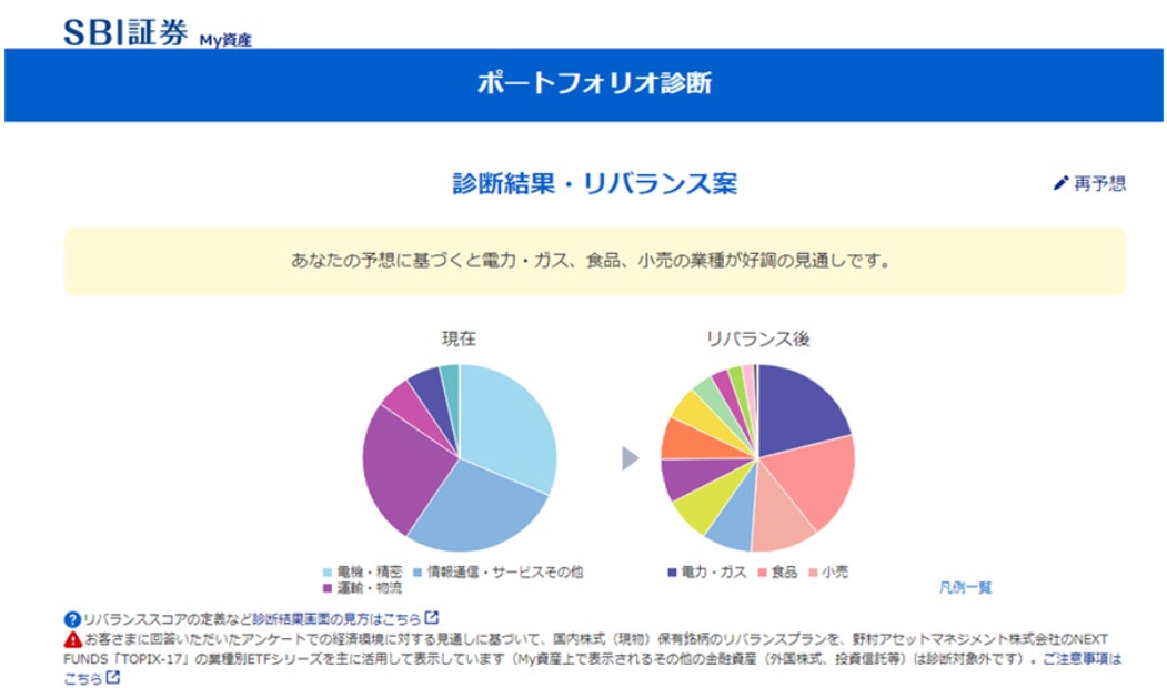 なお、本サービスの分析・診断結果で表示する銘柄は、原則、野村アセットマネジメントが運用するNEXT FUNDS「TOPIX-17」の業種別ETFシリーズ※2および「NEXT FUNDS 東証銀行業株価指数連動型上場投信(1615)」となります。
