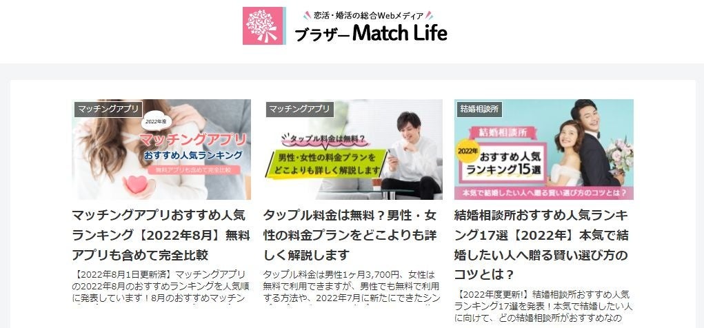 ブラザーMatch Life(URL: https://bromo.co.jp/match-app/)は、主に結婚相談所の比較を中心に行っているwebメディアです。