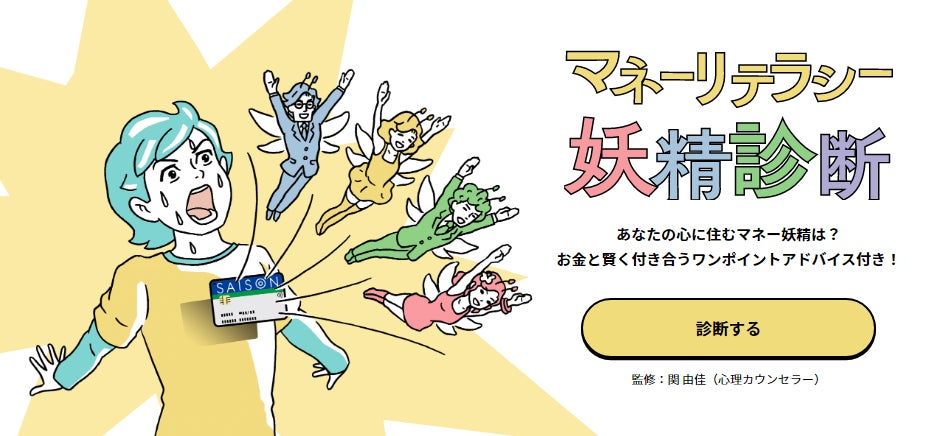 また、ページ内では5つの質問に答えるだけで、マネーリテラシー度を心に住むマネーリテラシー妖精として診断できるコンテンツ「マネーリテラシー妖精診断」をご用意しました。性格診断に加え、マネーリテラシーの理解度を確認する問題を組み込み、診断された妖精ごとにお金と賢く付き合うアドバイスを提供いたします。