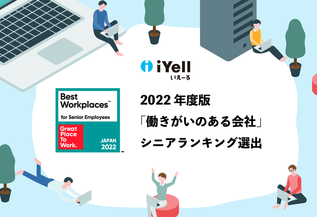 iYell株式会社(本社:東京都渋谷区、代表取締役社長 兼 CEO:窪田光洋、以下「iYell」)は、Great Place to Work® Institute Japan(以下「GPTWジャパン」)が実施する2022年版「働きがいのある会社」ランキングにおいて、シニアランキング中規模部門にて5位を受賞しました。