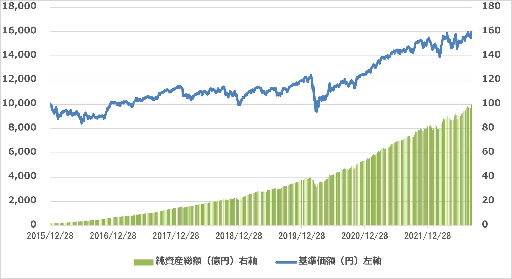 純資産総額と基準価額の推移 期間:2015年12月28日~2022年9月9日(日次データ)