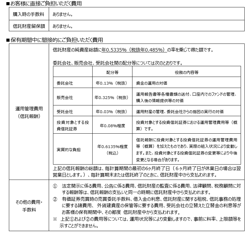 ※手数料等の合計額については、保有期間等に応じて異なりますので、表示することができません。