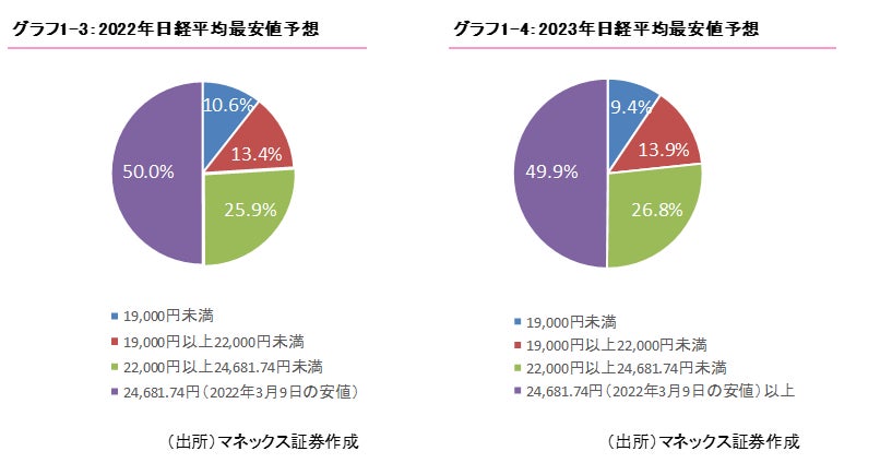 特別調査の1つ目として、2022年と2023年の日経平均株価、ダウ平均株価の高値安値予想を調査しました。