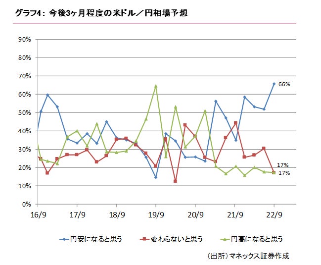 【円安になると思う】(2022年6月)52% →(2022年9月)66%(前回比+14%)