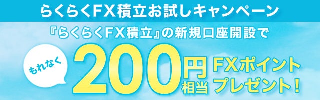 また、「らくらくFX積立」では皆様が投資を始めるきっかけとなるよう、口座開設をするだけで200円相当のFXポイントがもらえるキャンペーンを実施中です。