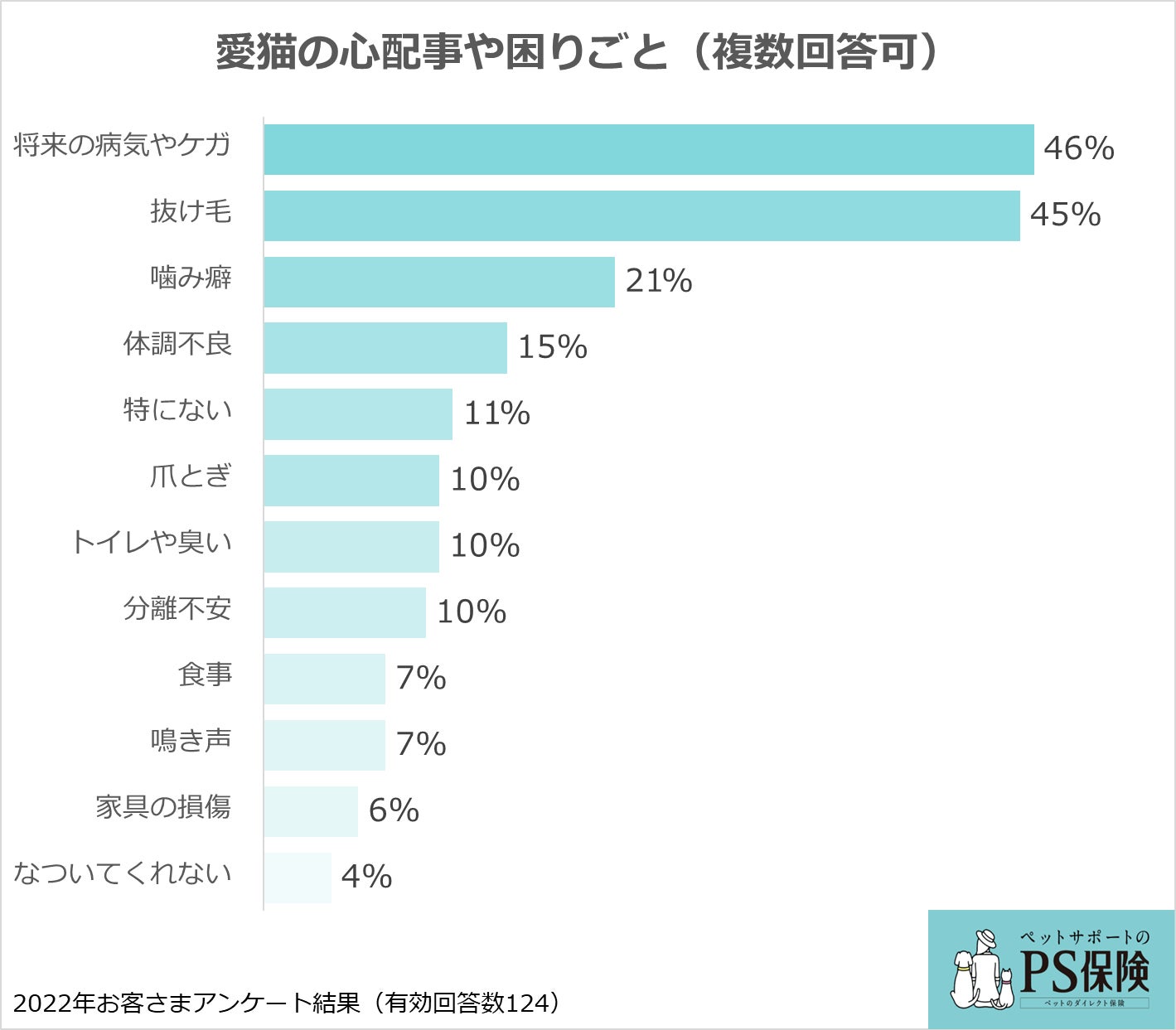 愛猫の心配事や困りごとについて聞いてみたところ、次のような回答を得ました。