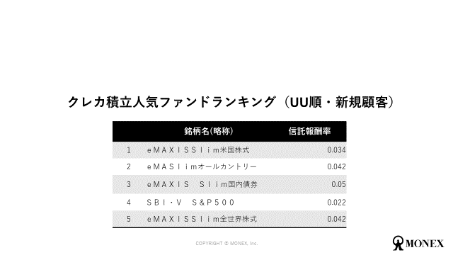 新規顧客:クレカ積立申込のタイミングで初めて当社に口座を開設いただいたお客様