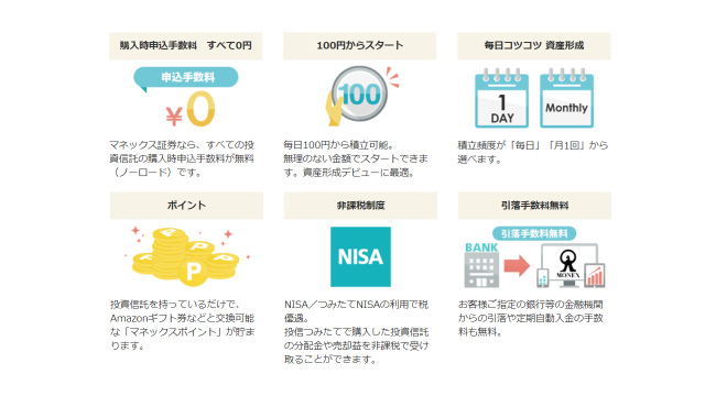 詳しくはマネックス証券ウェブサイト(https://info.monex.co.jp/fund/tsumitate/merit.html)
