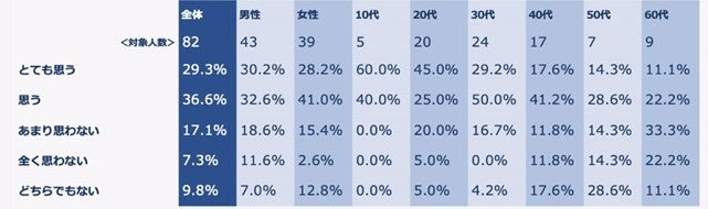 前述の「現金投資した」82名に、「ポイント運用」の経験があることで、初めての現金投資に取り組みやすくなったか、を聞いたところ、合計で65.9%が「とても思う」「思う」と回答しました。