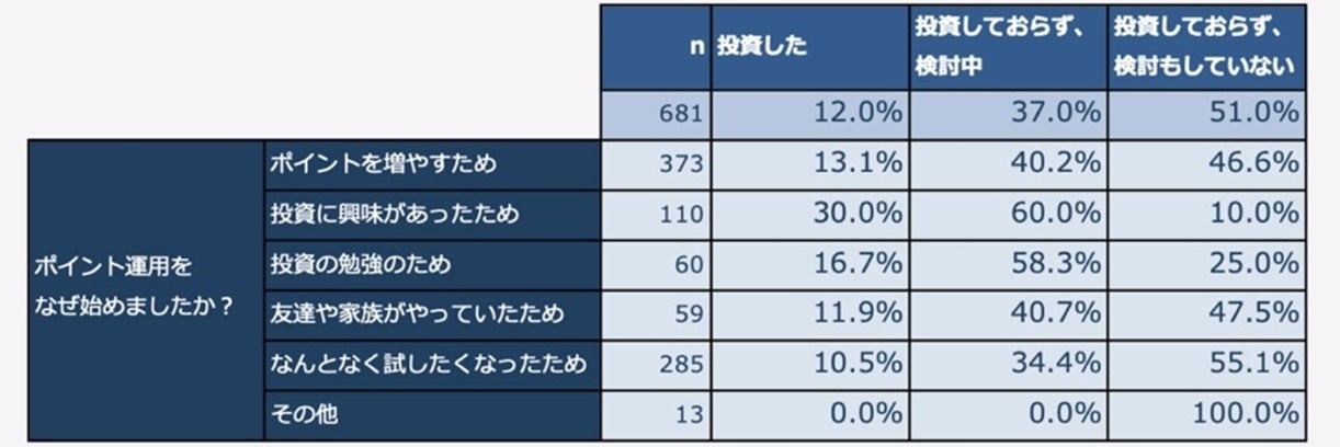| 「投資へのポイント運用」で「現金投資は未経験」を対象に調査 有効回答681人 【調査2】 |
