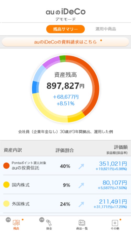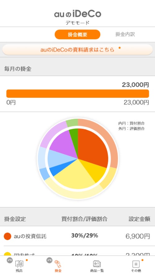 残高サマリーや掛金配分などの画面を直感的に操作できるデザインに変更