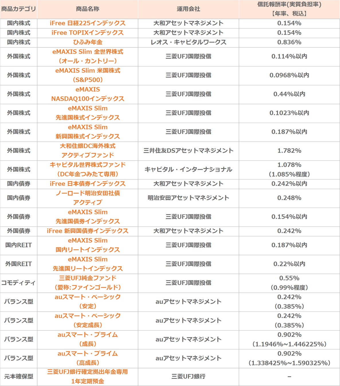 これまでご提供してきた元本確保型の定期預金や、資産残高に応じてポイント還元されるバランスファンドの「auスマート・ベーシック / auスマート・プライム」に加え、ご自身が投資対象や運用比率を決めて分散投資いただけるよう、運用コストを抑えたインデックスファンドや、市場の収益を上回るリターンを目標とするアクティブファンドなど、計17商品を拡充します。