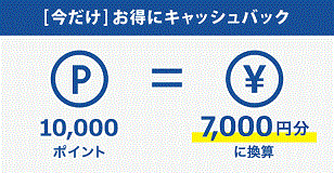 ■期間限定レート:10,000ポイント=7,000円(通常6,000円)→通常10,000ポイント=6,000円分に換算のところ、期間限定で10,000ポイント=7,000円分に換算します。
