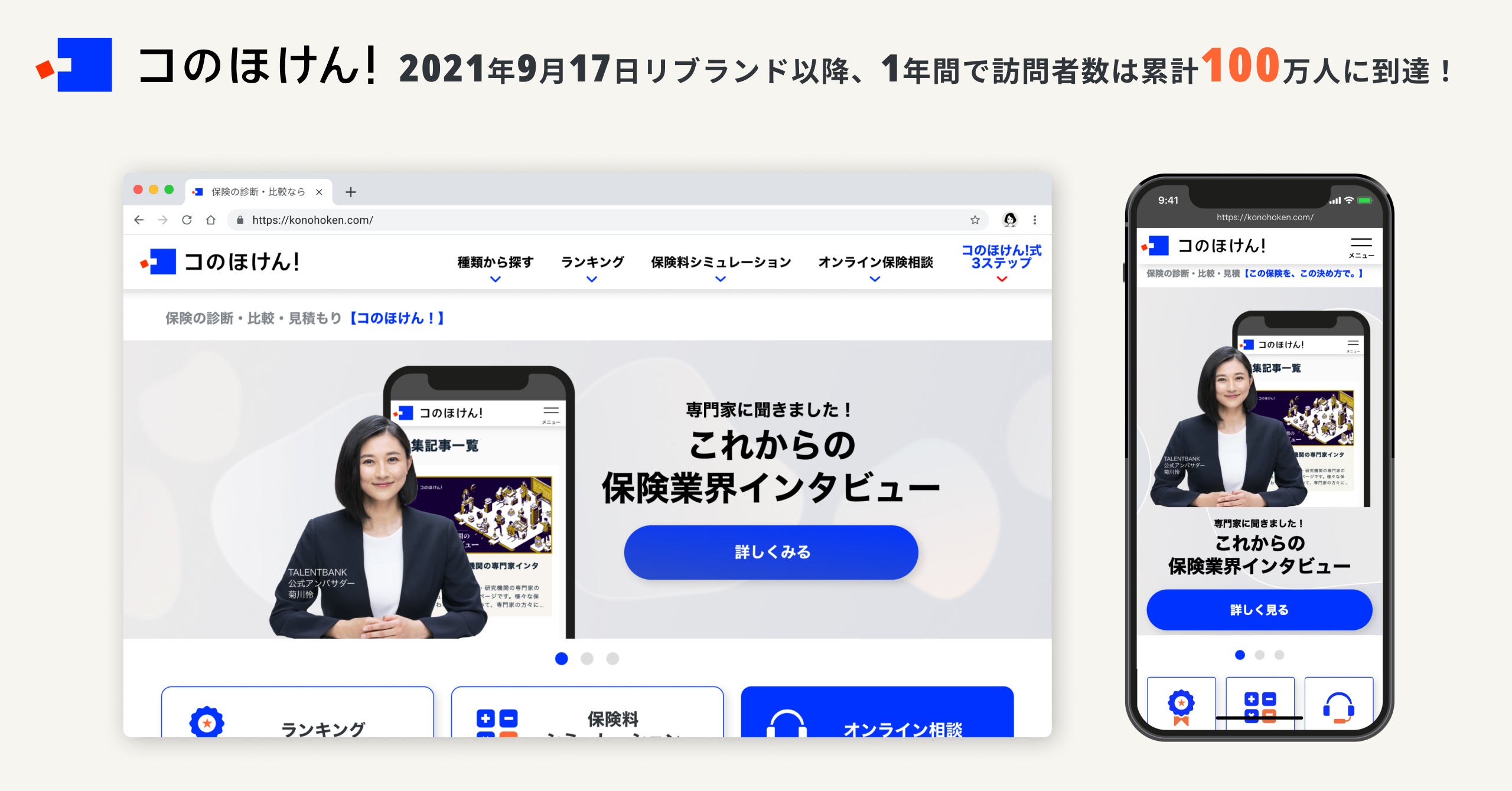 「自分に合った保険を、自分で選べる世界を」をミッションに掲げ事業展開するSasuke Financial Lab株式会社(代表取締役 松井清隆、東京都千代田区、以下「当社」https://sasukefinlab.com/)は、当社が運営するデジタル保険代理店「コのほけん!」( https://konohoken.com/ )において、リブランドから1周年を迎えたことをお知らせします。また、昨年9月からの1年間で訪問者数が100万人を突破しましたことを併せてお知らせ致します。