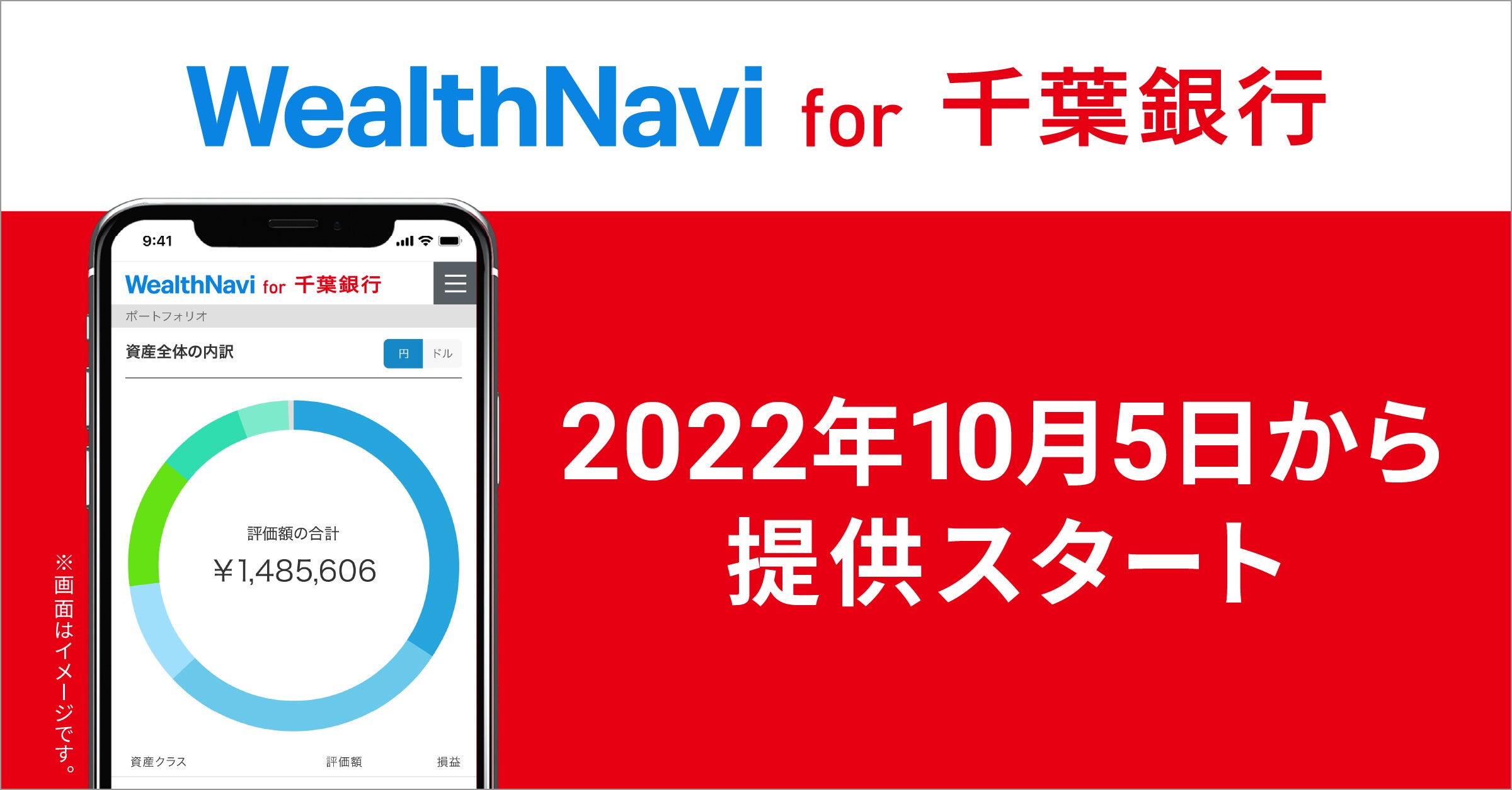 ウェルスナビ株式会社(本社:東京都渋谷区、代表取締役CEO:柴山和久)と株式会社千葉銀行(本店:千葉県千葉市、取締役頭取:米本努、以下「千葉銀行」)は、10月5日(水)より、千葉銀行のお客様向けにロボアドバイザー「WealthNavi for 千葉銀行」の提供を開始いたします。