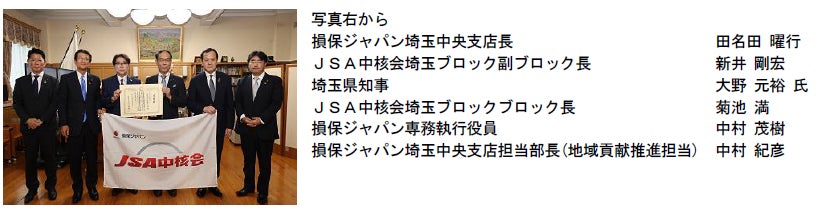 損害保険ジャパン株式会社(取締役社長:白川 儀一、以下「損保ジャパン」)は、)と、保険代理店の会員組織であるJSA中核会埼玉ブロック(ブロック長:菊池 満)は、埼玉県(知事:大野 元裕)が実施するNPO活動サポート事業を支援するため、埼玉県NPO基金への寄付を実施しました。