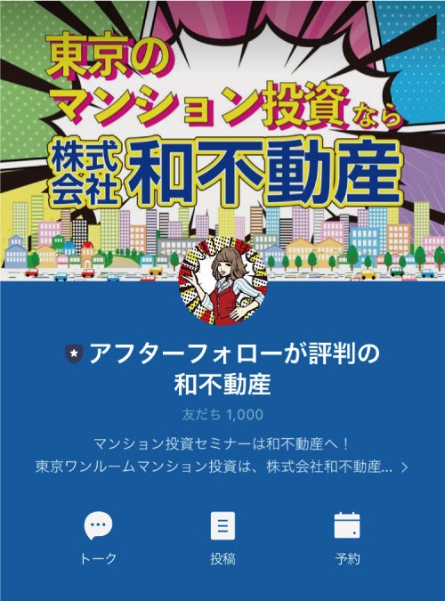 ご質問やご相談などがありましたら、トーク画面よりお気軽にお問い合わせください!スタッフが随時返信をさせていただきます。和不動産LINE公式アカウントとお友だちになって、スマホで直ぐに、マンション投資のプロのアドバイスを受けられる環境を手に入れませんか?(※返信の際にお名前等の個人情報をお伺いさせていただく場合があります)