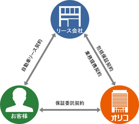 「オートリース保証」は、きたぎんリース・システムがお客さまと自動車リース契約をする際に、オリコがお客さまの債務保証を行い、リース代金の回収などを代行するスキームです。