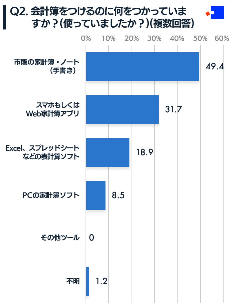 - 最多は「市販の家計簿・ノート(手書き)」49.4 %