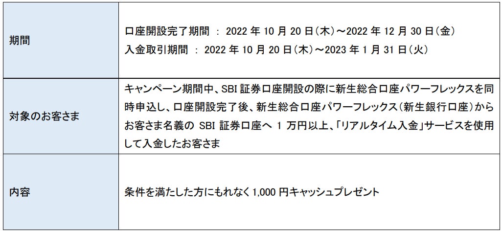 ※既にSBI証券口座・新生総合口座パワーフレックスをお持ちの方は対象外となります。
