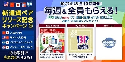 - 新通貨のお取引でもらえるキャンペーン