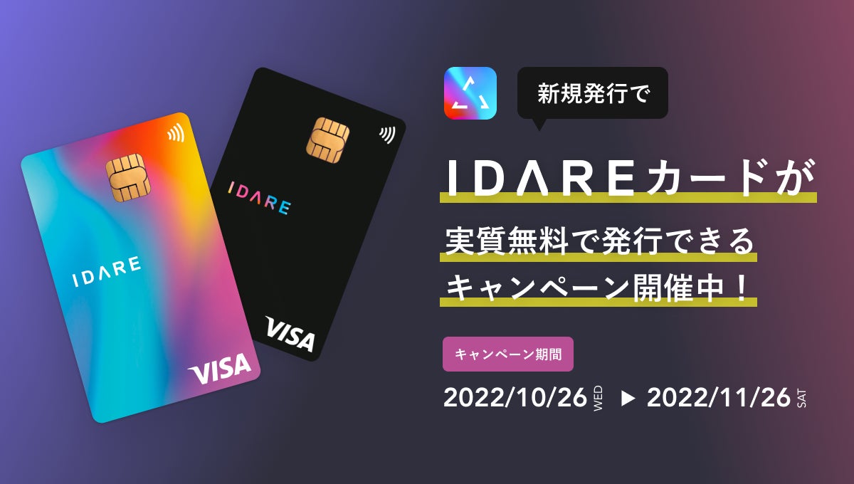 「IDARE(イデア)」の3Dセキュア対応を記念して、ご好評をいただいていたリアルカード発行実質無料キャンペーンを開催いたします。