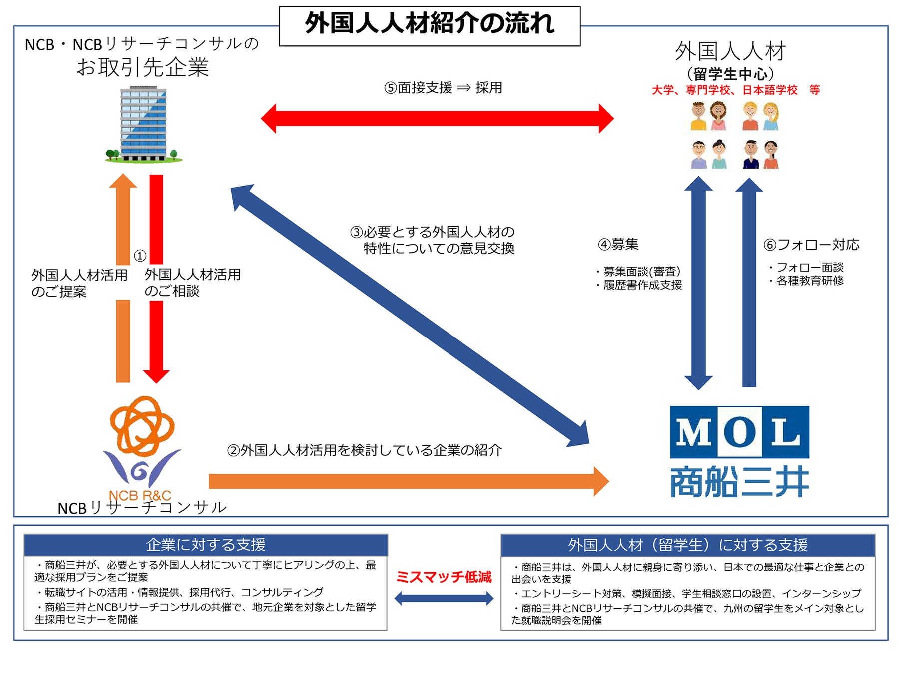 豊富な外国人人材紹介実績を有する商船三井と、多種多様な顧客基盤を有するNCB