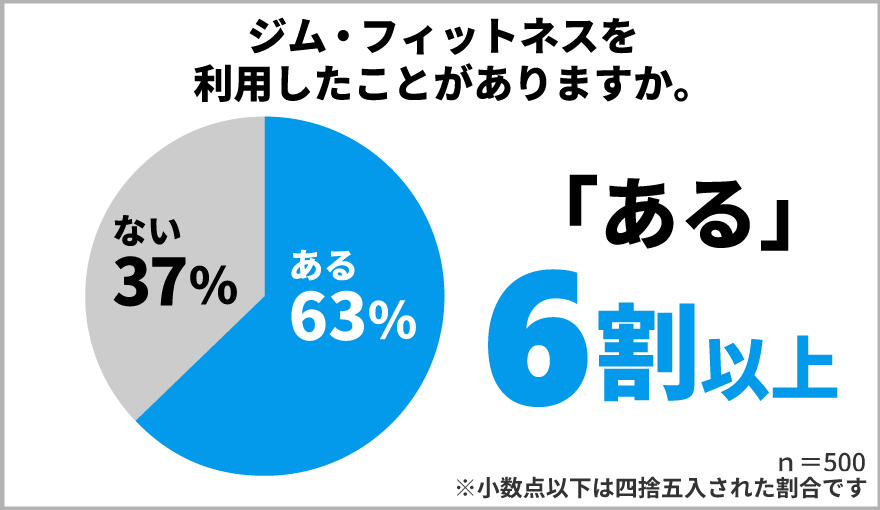 どれぐらいの人が、実際にジムやフィットネスを利用しているのか、その実態が気になるところです。アンケートで割合をチェックしてみましょう。