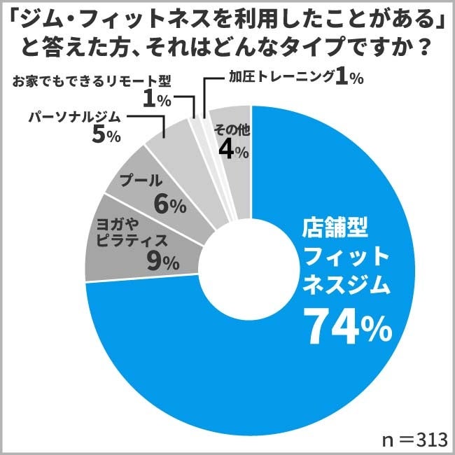ジム利用者のおよそ4人に3人が、「店舗型」フィットネスジムを選んで通っているようです。