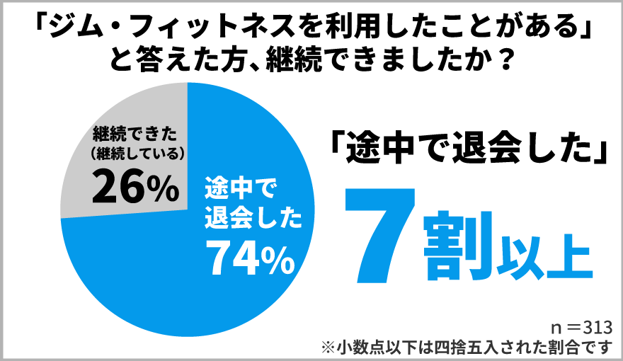 今回のアンケート結果からは、「7割以上の方がジムやフィットネス通いをした経験がある」という事実が明らかになりました。