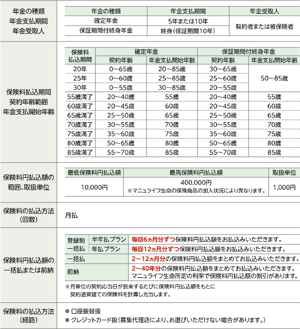 (詳細は右記URLを参照 https://www.manulife.co.jp/ja/individual/products/goods/kodawari-kojin.html)