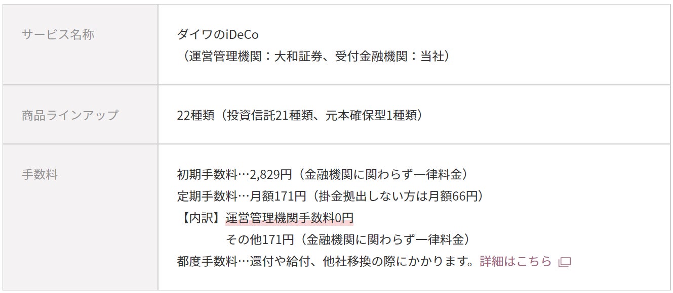 ▼詳しいサービス内容についてはダイワのiDeCoのページをご確認ください。