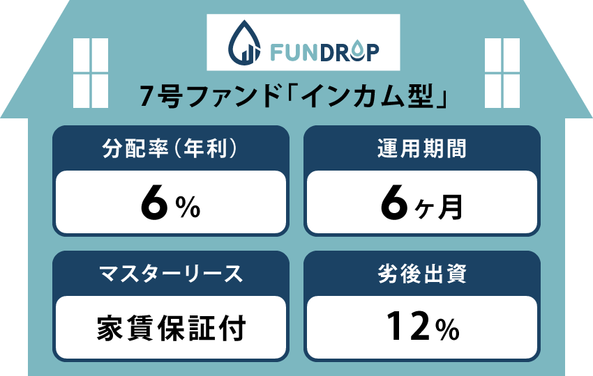 - 7号ファンドは、利回り(年利)6%、賃料保証付きにて運用