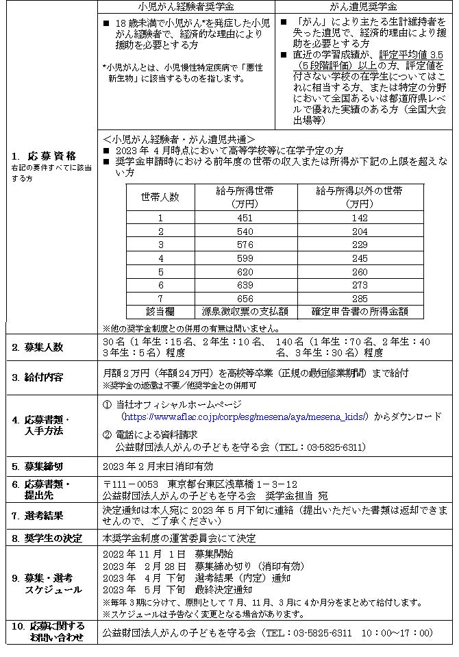 1.アフラック小児がん経験者・がん遺児高校生向け奨学金制度について
