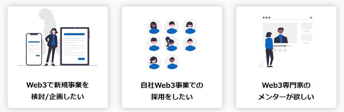 WEB3で新規事業を検討される企業様、自社Web3事業で採用にお困りな企業様、Web3の勉強会やアドバイザーをお探しのお客様向けに無料相談の受付を実施いたします。ご状況をヒヤリングさせて頂き、適切な方法や人材などを「Desume」よりご推薦させて頂きます。