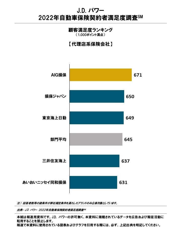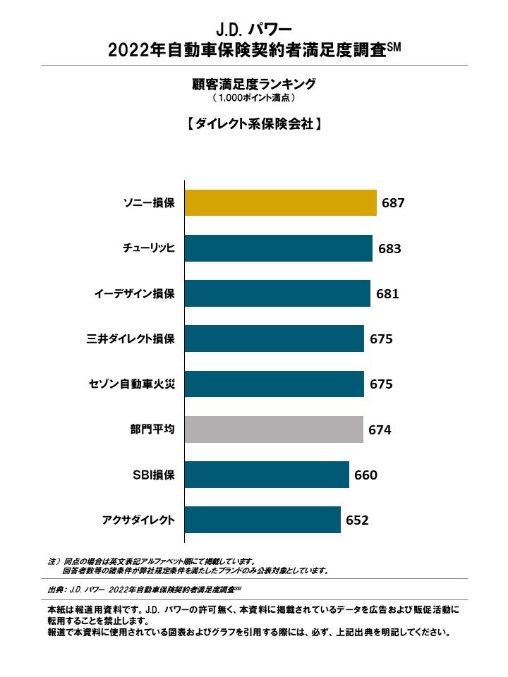 (本社:東京都港区、代表取締役社長:山本浩二、略称:J.D. パワー)は、J.D. パワー 2022自動車保険契約者満足度調査℠の結果を発表した。