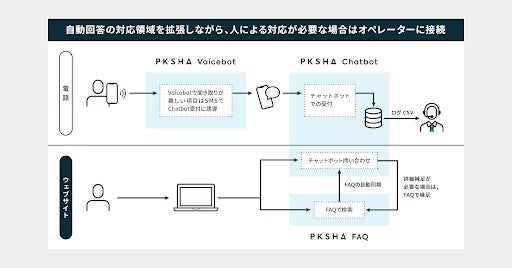 お客様の利便性向上・迅速化に向けた改善が日々行われる中で、総合的な窓口業務の改善を目指し、FAQシステム、チャットボット、ボイスボットを視野に、総合的な顧客体験の向上に取組んでいました。それぞれのシステムを連携することで、複合的なチャネルを活用した問合せの自己解決率向上が見込めることから、PKSHAのAI SaaSの導入が決定されました。
