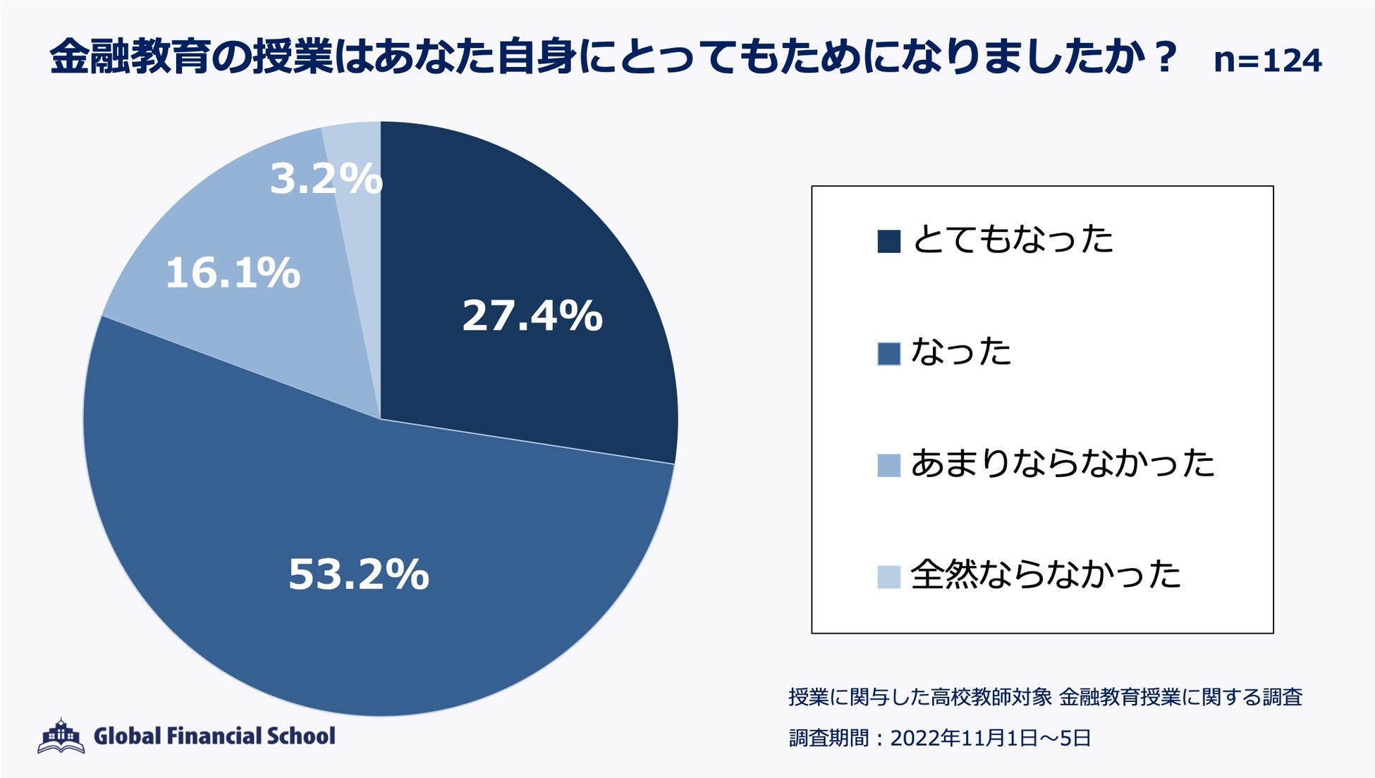 金融教育の授業が「自身のためにもなった」と思う教師が約 8 割