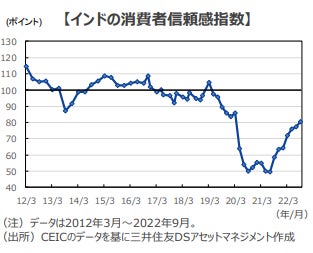 ■インドの9月の消費者物価上昇率は前年同月比+7.4%とインフレが加速しているにもかかわらず、『ディワリ』商戦が好調な背景には、ペントアップディマンドと消費者心理の改善があると考えられます。