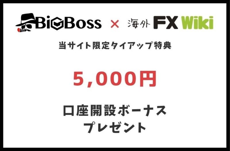 期間中に海外FX WikiからBigBossの新規口座開設をした人全員に50ドルもしくは5000円の口座開設ボーナスが付与されます。