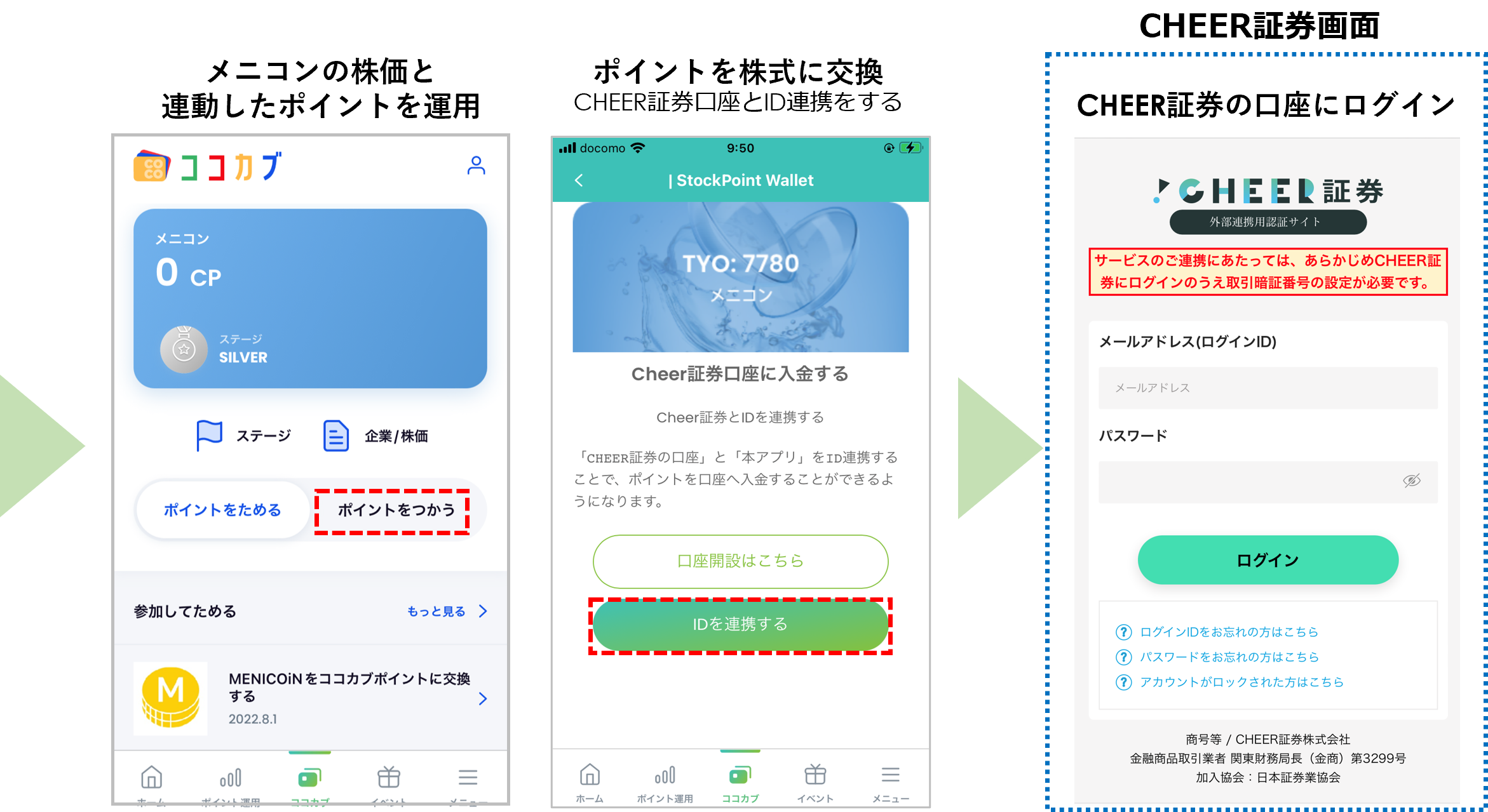 メニコンココカブポイントからメニコン株式への交換にはCHEER証券(※3)の口座開設が必要です。