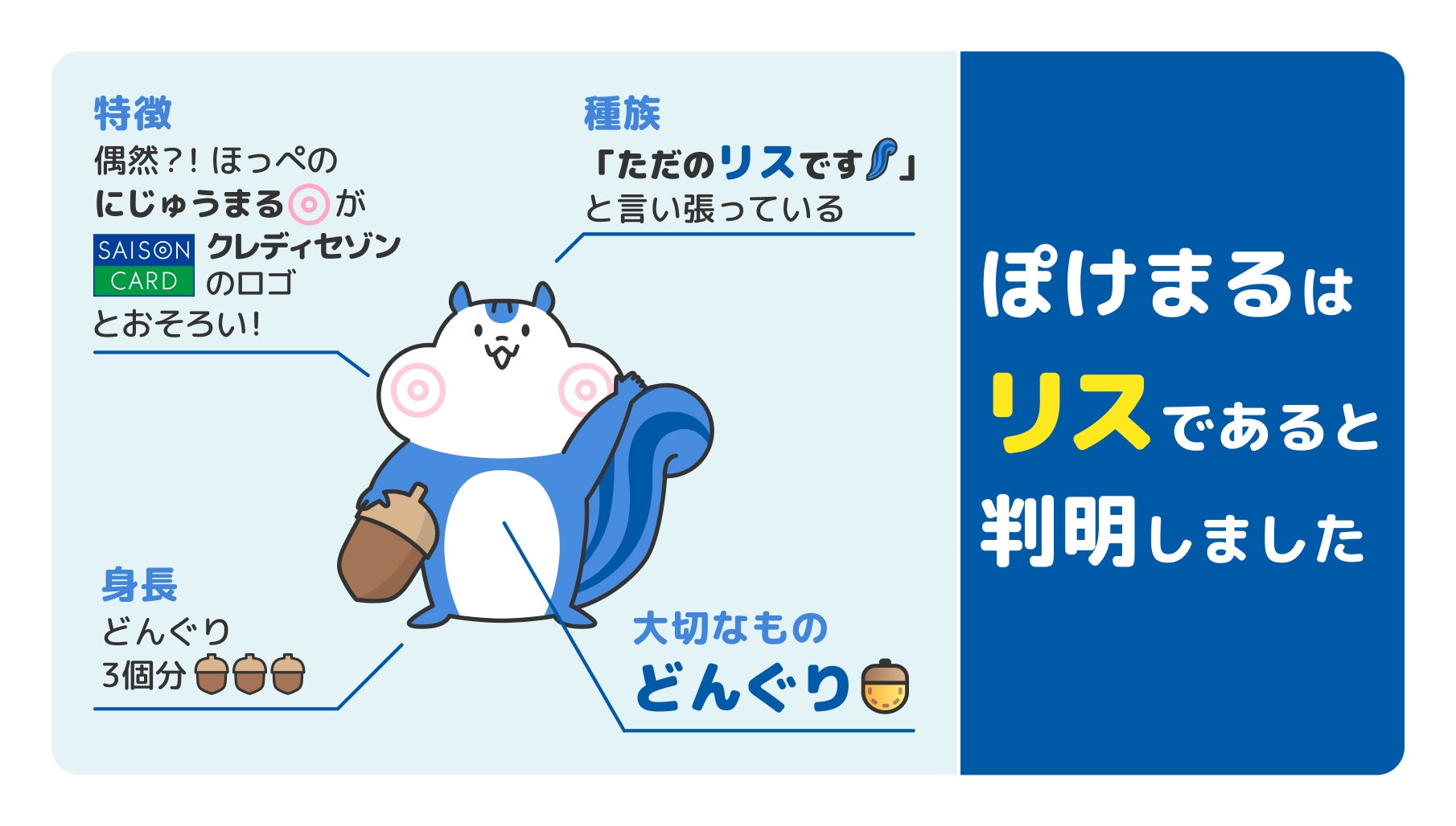 2019年11月のサービス提供開始時より『セゾンポケット』をPRし、時にはお客様サポート係として、また2022年5月からは「初心者のためのつみたて投資ブログ」の編集見習いとして常に『セゾンポケット』の活動を支えてきた「ぽけまる」ですが、その正体は明らかになっていませんでした。2022年11月、3周年を迎えられたことに感謝し、「ぽけまる」と共にユーザー様への感謝キャンペーンの企画を検討するなかで「ぽけまる」が自身の種族は“リス”であると発言したため、ご報告します。