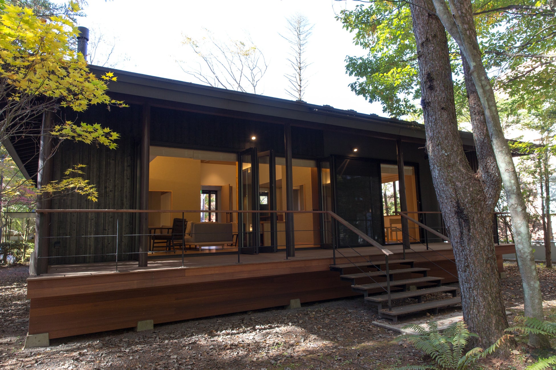 シェア別荘として運用する物件は2021年9月に基礎と主要な柱を残して全面リニューアル工事を実施。ル・コルビュジエの弟子、坂倉準三氏が運営した坂蔵アトリエ出身の石上英一郎氏(ニュートラル合同会社)が設計、施工は軽井沢のハイクラスな別荘建築を得意とし、白洲次郎との縁もある株式会社新建築が担当しています。