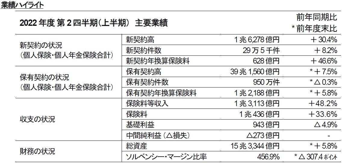 メットライフ生命保険株式会社(代表執行役 会長 社長 最高経営責任者 ディルク・オステイン)の2022年度第2四半期(2022年4月1日~2022年9月30日)の業績をお知らせします。