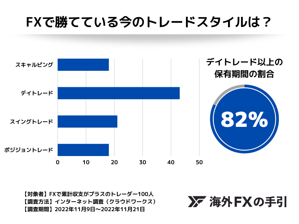 続いてFXで勝てている投資家に今のトレードスタイルを聞いたところ「デイトレード以上の保有期間の割合」が大きく増えていることが分かりました。