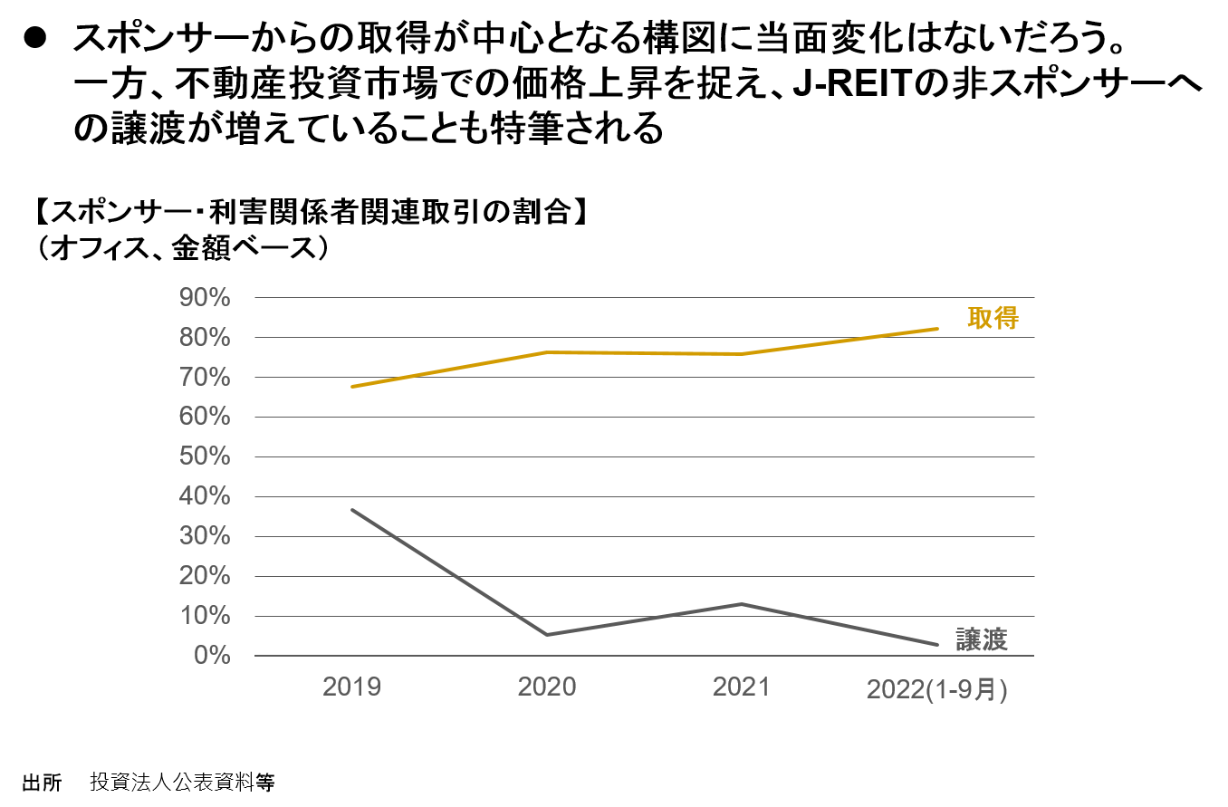 - 足許の投資口価格の推移を踏まえても、スポンサーからの不動産取得が中心となる構図に当面変化はないだろう。