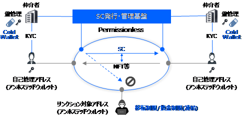 パーミッションレスSCについては、ネットワークアクセスに許可が必要なパーミッションドBCと異なり、パーミッションレス型BCが内在するリスク特性を踏まえたスキーム面・技術面の工夫が必要です。
