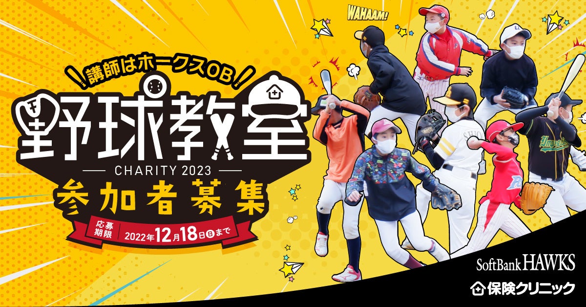 福岡ソフトバンクホークス2022年オフィシャルスポンサーの保険ショップ『保険クリニック®』は、1月29日(日)に雁の巣レクリエーションセンター 「少年野球場」 (福岡県福岡市)にて開催する小学生向けチャリティ野球教室の参加者を募集します。当日は福岡ソフトバンクホークスOBが講師となって直接子どもたちへ指導します。