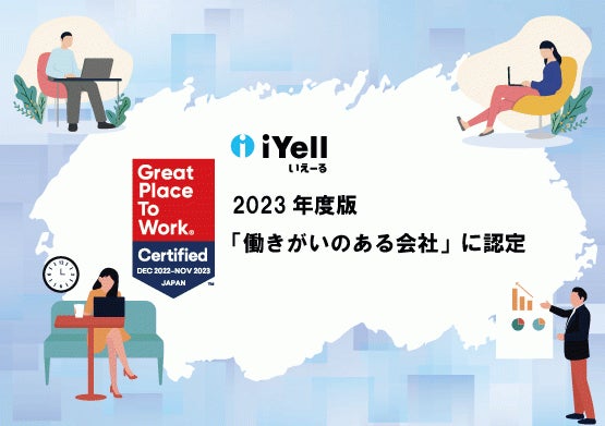 iYell株式会社(本社:東京都渋谷区、代表取締役社長 兼 CEO:窪田光洋、以下「iYell」)は、Great Place to Work® Institute Japan(以下「GPTWジャパン」)が実施する、2023年版「働きがいのある会社」に2年連続認定されました。